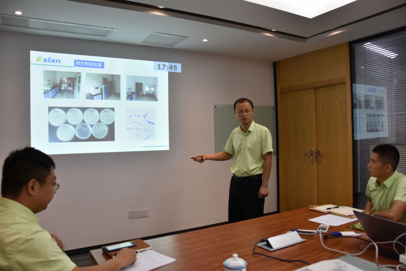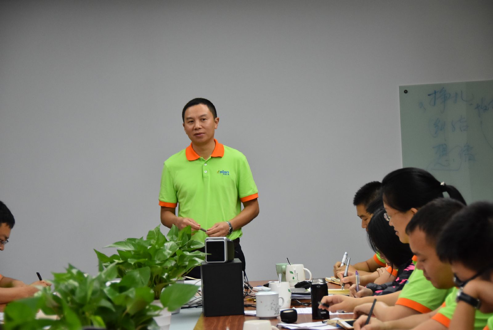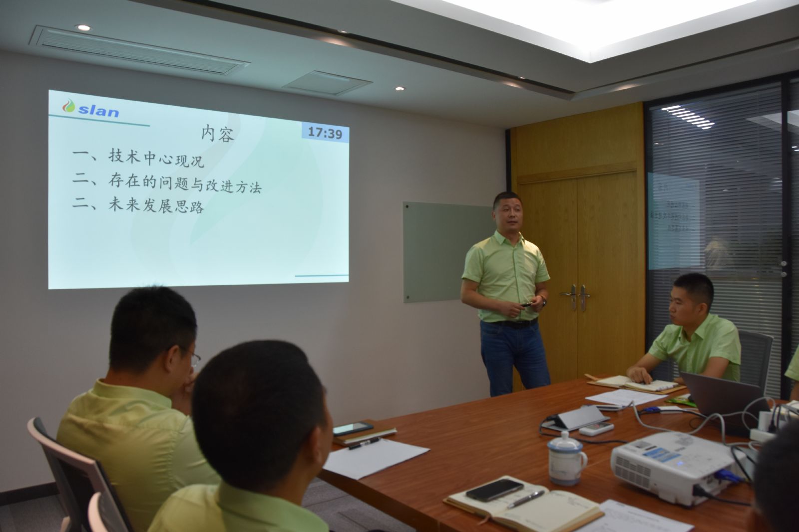 隨后,技術(shù)中心總監(jiān)楊漢博博士、研發(fā)中心總監(jiān)王建平博士、生產(chǎn)中心經(jīng)理江勇、市場部總監(jiān)趙明江、財(cái)務(wù)中心經(jīng)理彭麗分別對各自部門之工作進(jìn)行總結(jié)。