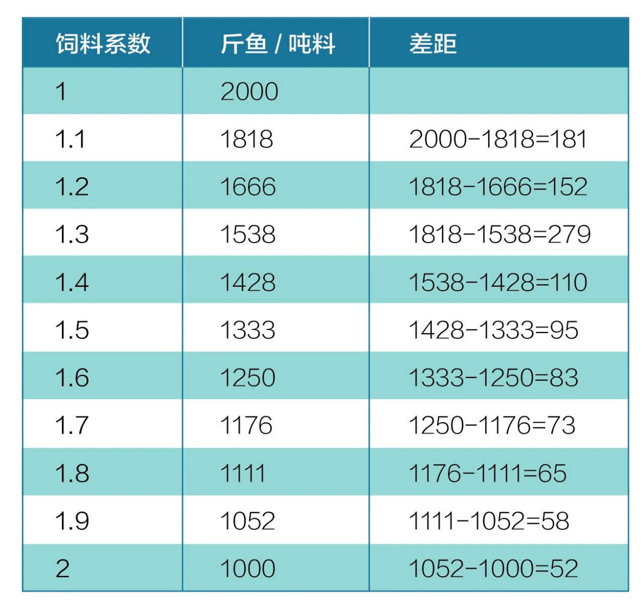 假設(shè)在投餌率為4%的情況下,以一個存塘1000公斤魚的池塘為例,投喂A、B兩種飼料。A飼料的飼料系數(shù)1.85,則日增重為21.62公斤(1000×4%÷1.85=21.62);B飼料的飼料系數(shù)1.25,則日增重為32公斤(1000×4%÷1.25=32)。
